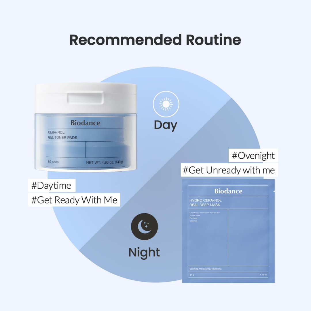 Experience a refreshing sensation with BIODANCE Cera-nol Gel Toner Pads, as they are made with lightweight gel sheets that contain the same active ingredients as the Biodance Cera-nol collagen mask.