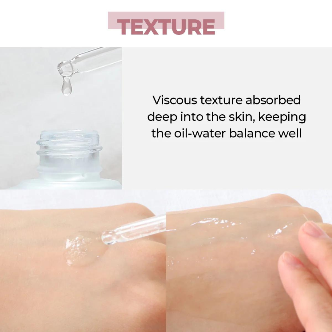 - Enriched with the fermentation synergy effect of Galactomyces-Bifida to moisturize and enhance the skin elasticity.