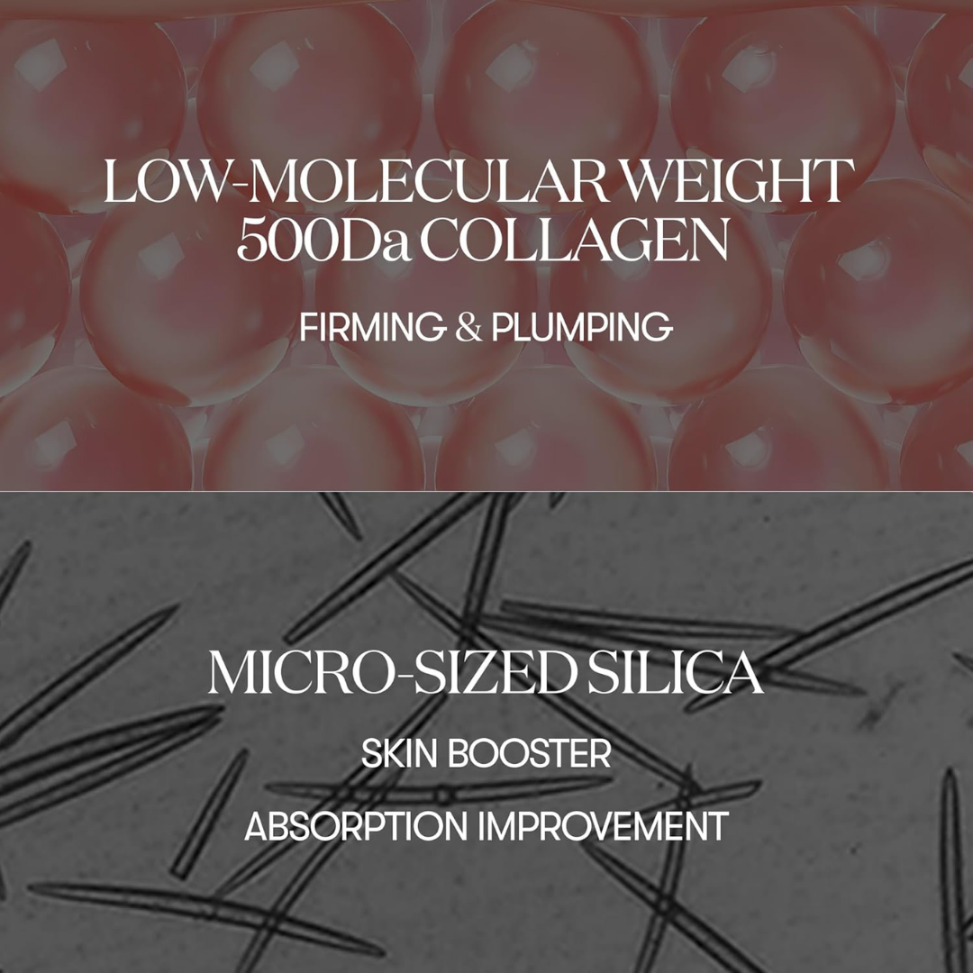 - Low Molecular Collagen (500Da) – Features a low molecular weight for deep penetration, enhancing skin elasticity and resilience.