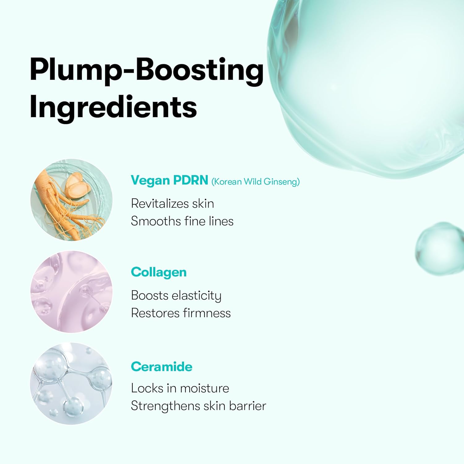 - Collagen: Helps improve skin resilience and provides a plumping effect.